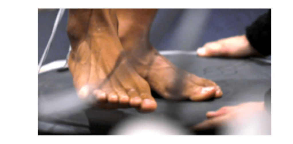 Perturbation training is a specific type of neuromuscular and proprioceptive training that typically requires supervision and utilizes a rocker board. The supervising person shifts the board in different directions in a controlled manner, while the person training balances in a double leg or single leg stance. The method is used to improve dynamic stability of the knee after injury and has been shown to improve knee kinematics, reduce protective co-contractions, and improve gait asymmetries.